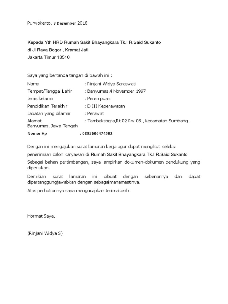 Contoh Surat Lamaran Kerja Rumah Sakit Bhayangkara - Contoh Surat Lamaran Kerja Di Rumah Sakit II / Maka, tentu bekerja menjadi hal yang wajib bagi anda.